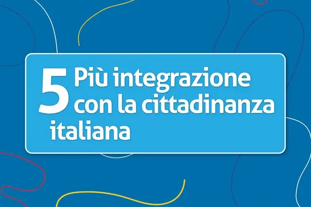 Il QUINTO referendum abrogativo propone di dimezzare da 10 a 5 anni dei tempi di residenza legale in Italia per la richiesta di concessione della cittadinanza italiana, ripristinando un requisito introdotto nel 1865 e rimasto invariato fino al 1992. Nel dettaglio si va a modificare l’articolo 9 della legge n. 91/1992 con cui si è innalzato il termine di soggiorno legale ininterrotto in Italia ai fini della presentazione della domanda di concessione della cittadinanza da parte dei maggiorenni. Il referendum sulla Cittadinanza Italiana non va a modificare gli altri requisiti richiesti per ottenere la cittadinanza quali: la conoscenza della lingua italiana, il possesso negli ultimi anni di un consistente reddito, l’incensuratezza penale, l’ottemperanza agli obblighi tributari, l’assenza di cause ostative collegate alla sicurezza della Repubblica. Questa modifica costituisce una conquista decisiva per circa 2 milioni e 500mila cittadine e cittadini di origine straniera che nel nostro Paese nascono, crescono, abitano, studiano e lavorano. Allineiamo l’Italia ai maggiori Paesi Europei, che hanno già compreso come promuovere diritti, tutele e opportunità garantisca ricchezza e crescita per l’intero Paese.