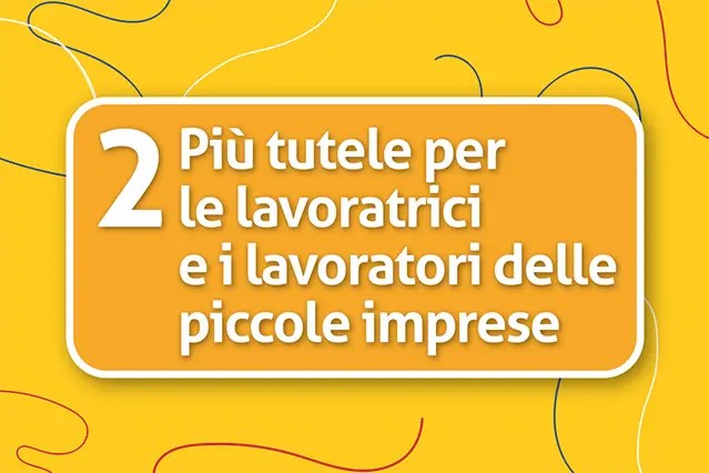 Il SECONDO quesito riguarda la cancellazione del tetto all’indennità nei licenziamenti nelle piccole imprese. In quelle con meno di 16 dipendenti, in caso di licenziamento illegittimo oggi una lavoratrice o un lavoratore può al massimo ottenere 6 mensilità di risarcimento, anche qualora una/un giudice reputi infondata l’interruzione del rapporto. Questa è una condizione che tiene le/i dipendenti delle piccole imprese (circa 3 milioni e 700mila) in uno stato di forte soggezione. Obiettivo è innalzare le tutele di chi lavora, cancellando il limite massimo di sei mensilità all’indennizzo in caso di licenziamento ingiustificato affinché sia la/il giudice a determinare il giusto risarcimento senza alcun limite.